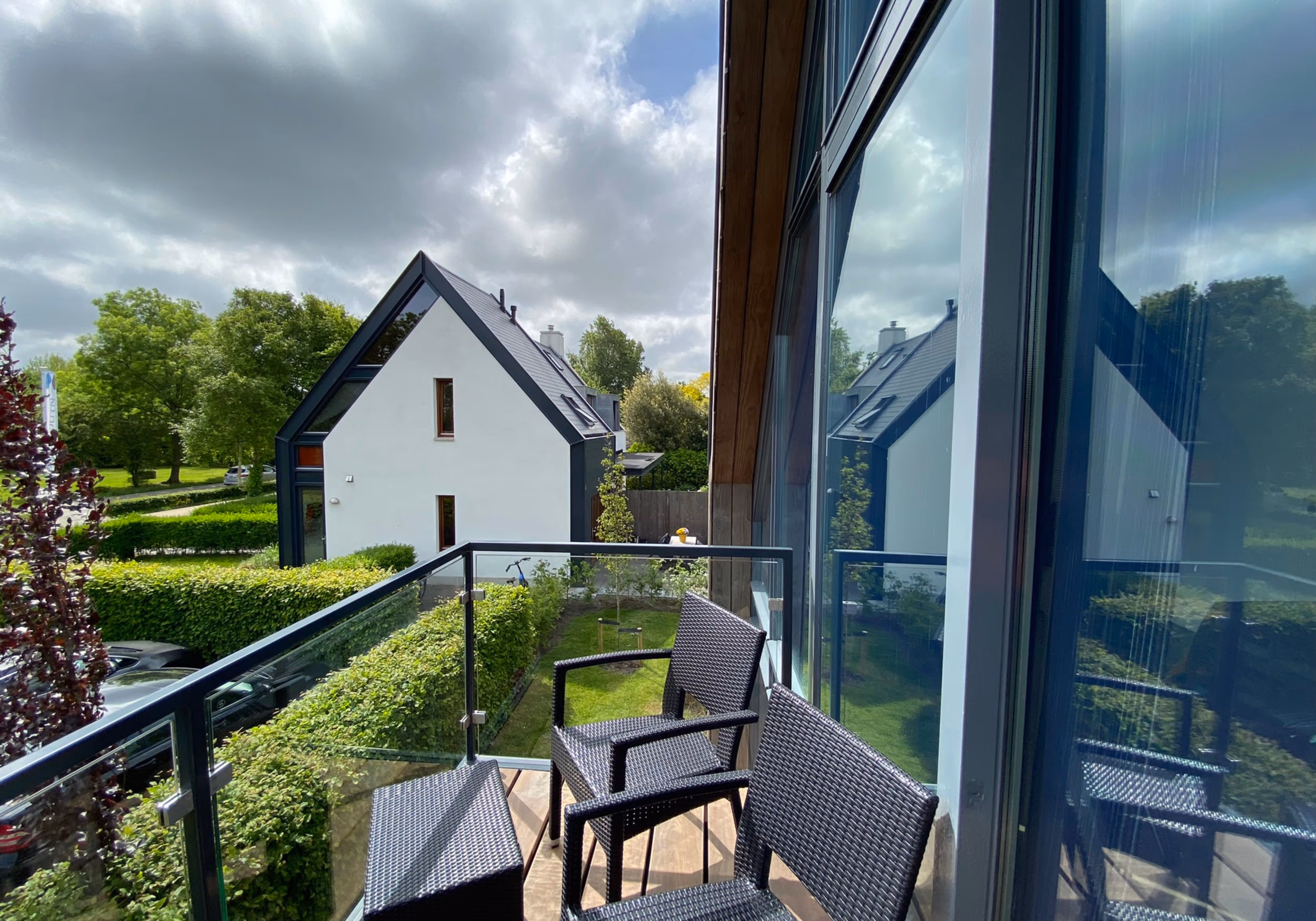 Appartement 5 is door de enorme glazen pui een zeer gewild appartement! Veel licht en uitzicht over het natuurgebied tegenover ParelDuyn. U geniet op het balkon van de ochtend-middagzon.