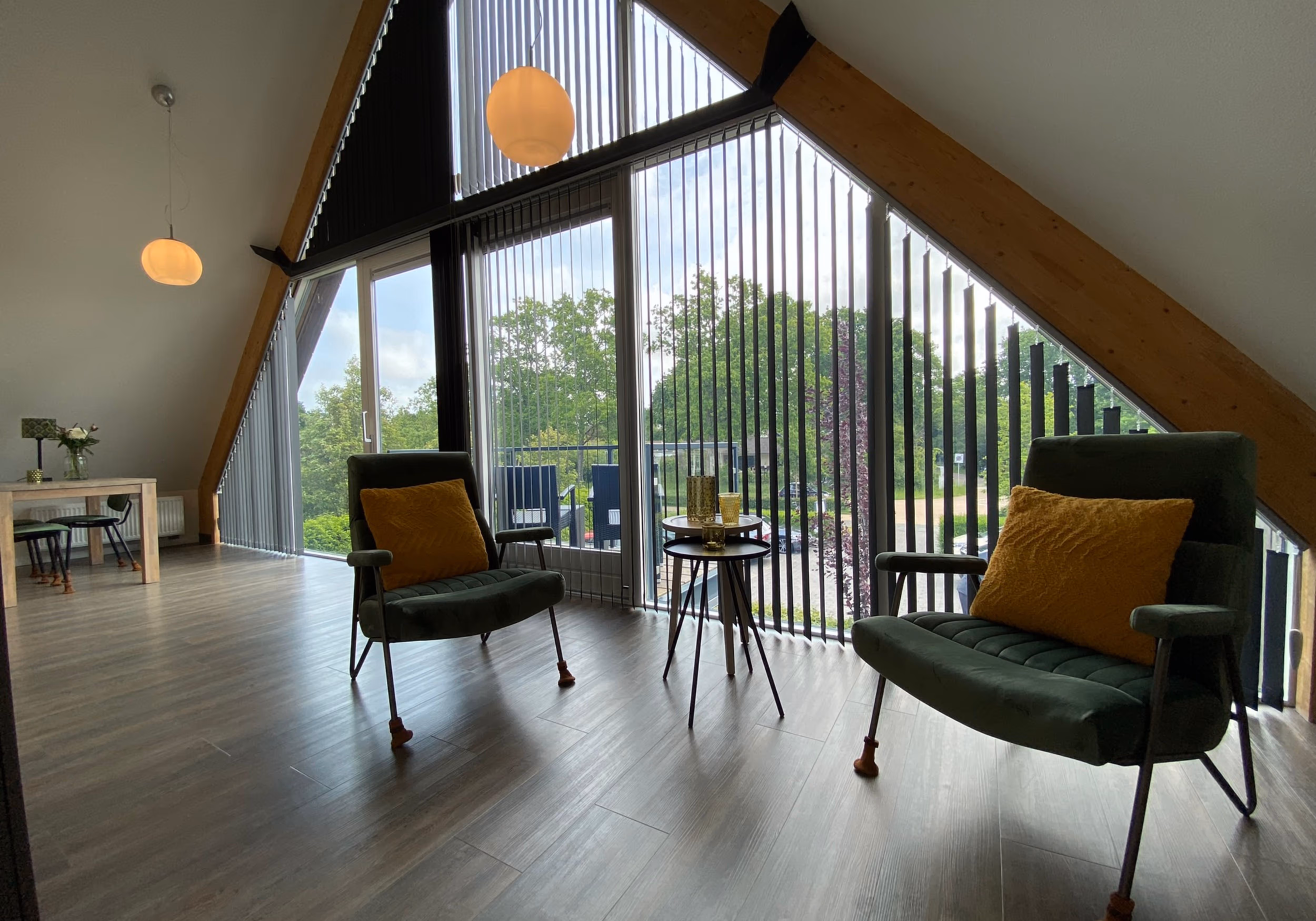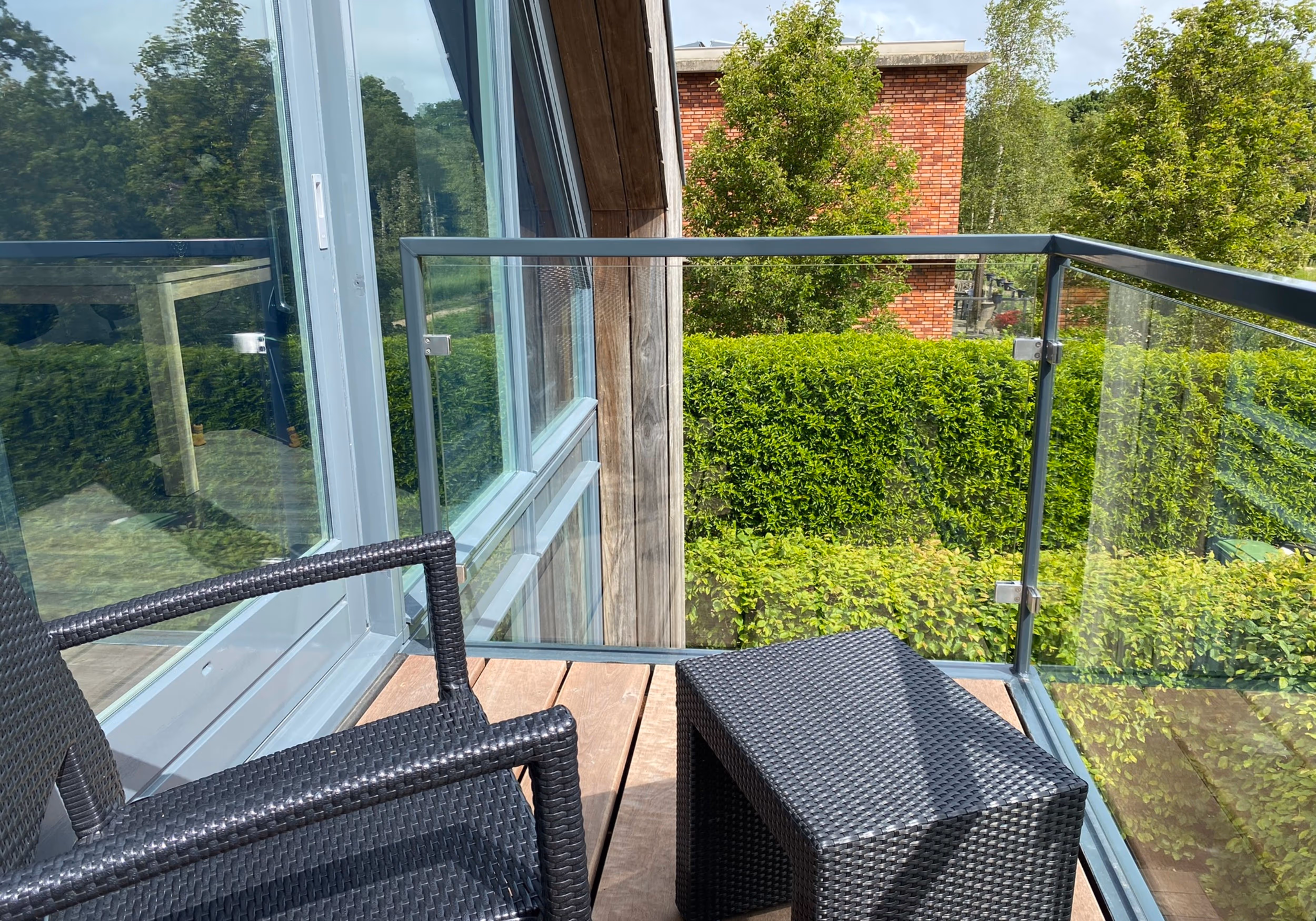 Licht appartement met glazen pui en balkon met weids uitzicht over het natuurgebied.