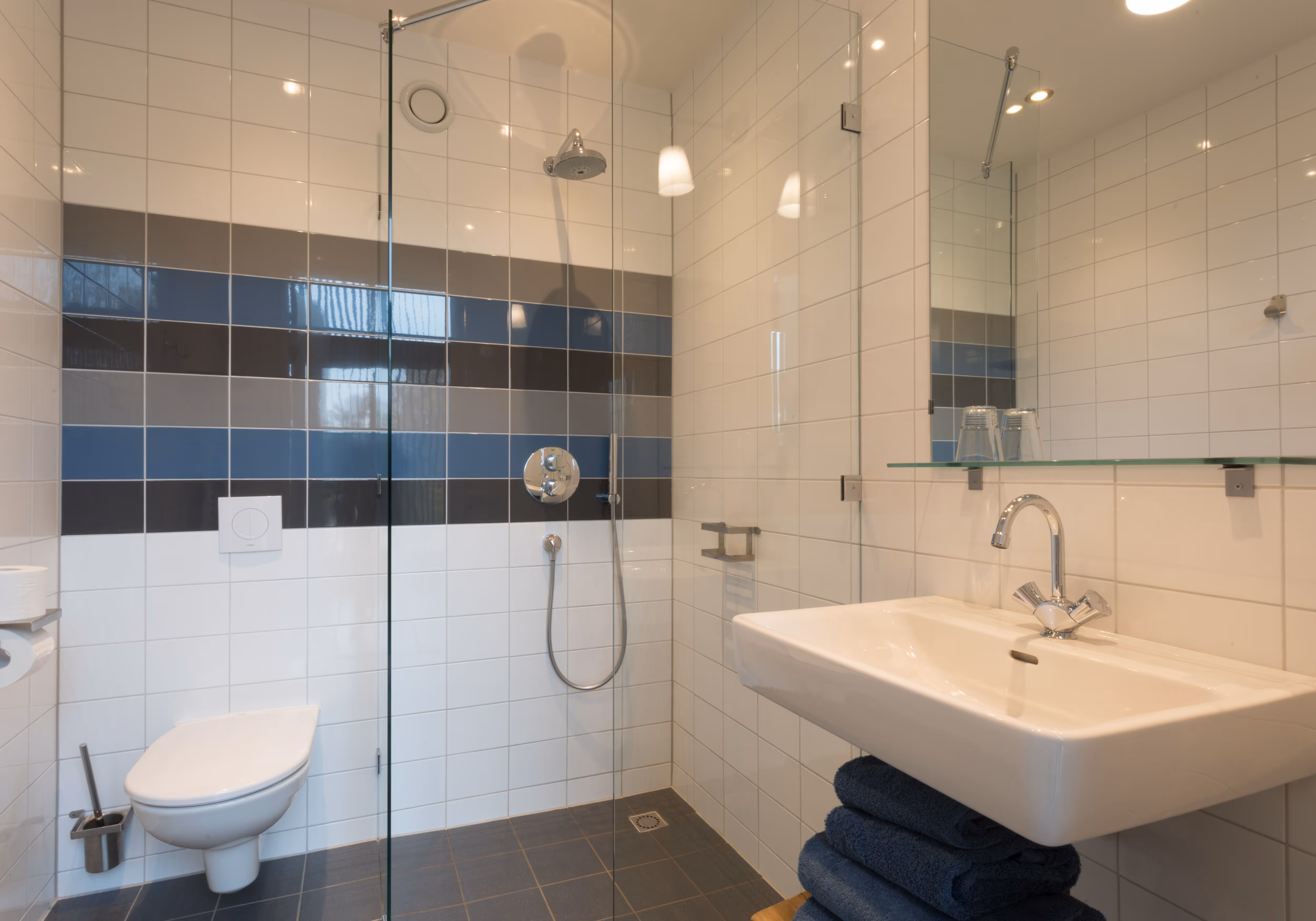 Binnen ( 52 m² ) vindt u een compleet ingericht keuken met een vaatwasser, combi-oven, kookplaat en verder alles wat u nodig heeft in een keuken. De ruime, lichte woonkamer heeft een eetgedeelte en een zitgedeelte met 2 luie stoelen bij de tv. In het midden vindt u de ruime badkamer met hand- en regendouche, wastafel en toilet. De zachte handdoeken liggen voor u klaar.