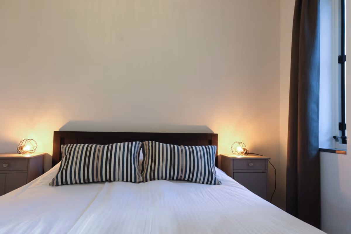 In het slaapgedeelte staat een tweepersoonsbed (2.10 lang) met hoogwaardige matrassen. Bij aankomst is uw bed opgemaakt met fris beddengoed. De badkamer is voorzien van een hand- en regendouche, wastafel en toilet. De zachte handdoeken liggen voor u klaar.