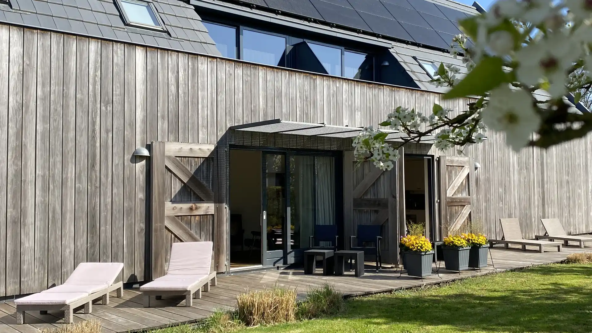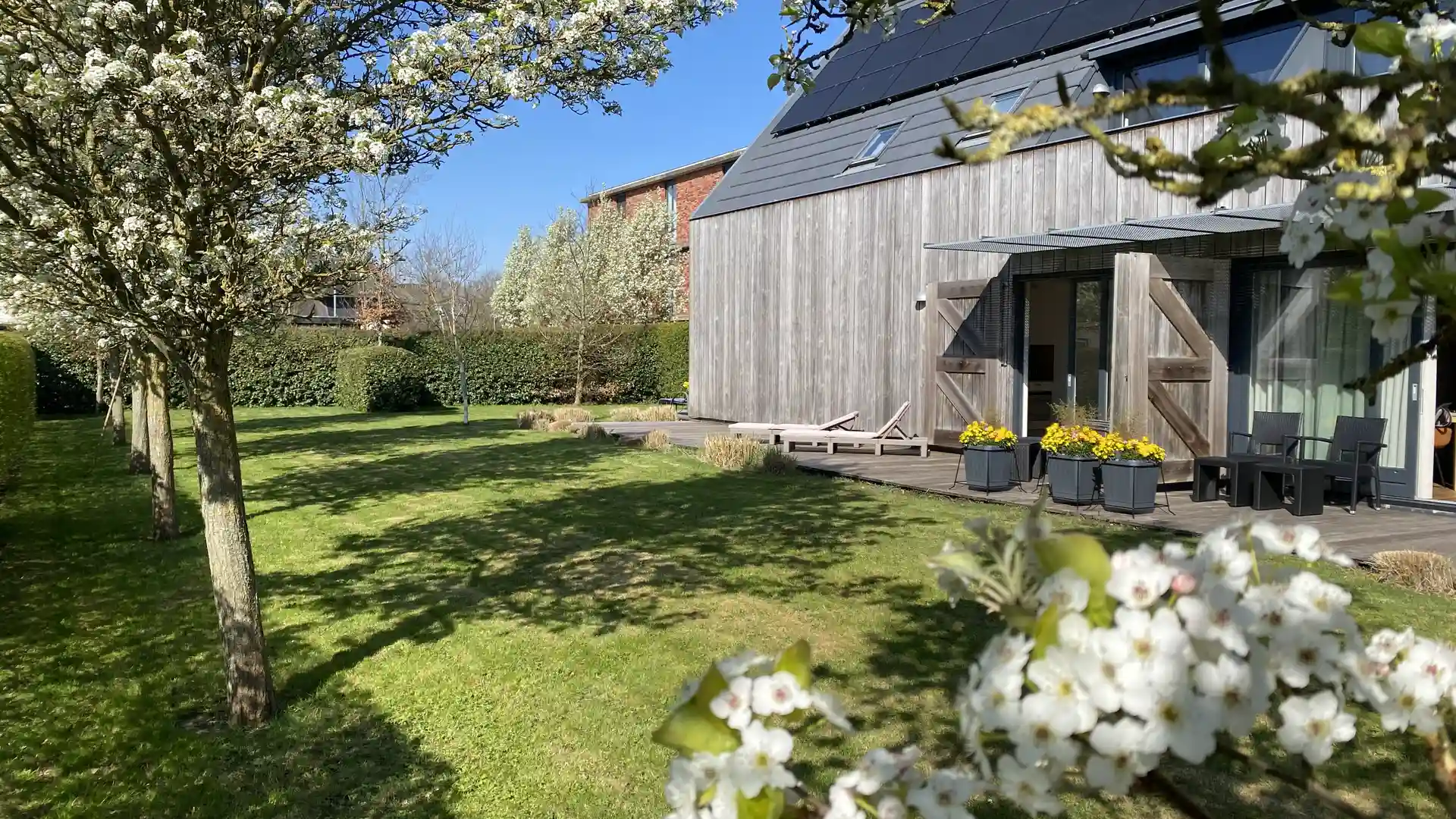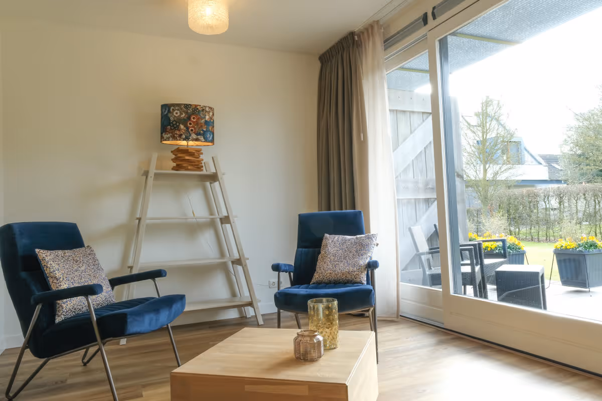 Privacy en rust in een sfeervolle studio met beschut terras en uitzicht op de groene tuin.